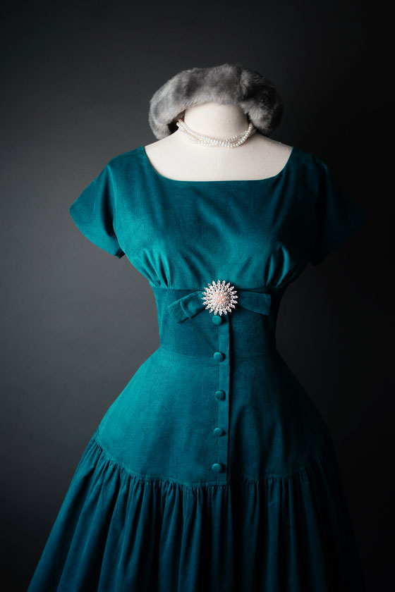 COTTON CORDUROY DRESS WITH SHORT OR 3/4 SLEEVES