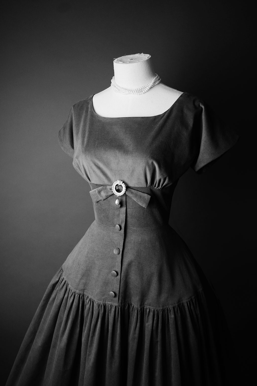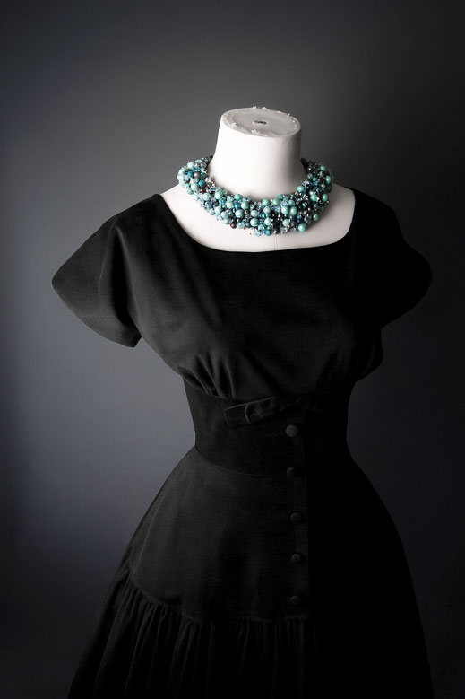 As a PRETTIE LANES original, you can find signature Mid-Century authentic details, such as a lapped metal zipper (center back), true to era seam finishing and genuinely hand-stitched details inside the dress - a couture finish typical for the fashion of the 1950s.