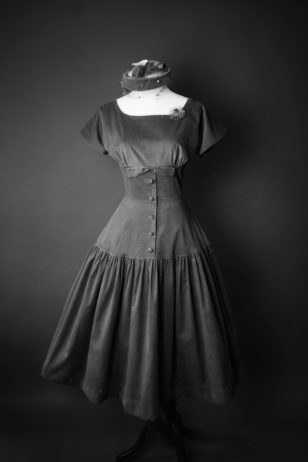 Note: Dress shown with a light petticoat, hat & accessories - not included. Black and White photos or original Teal Blue version to showcase the model you are ordering.
